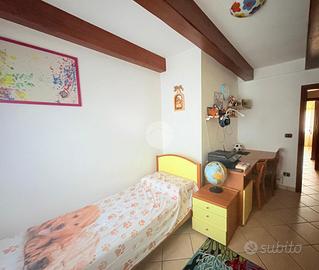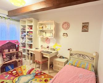 * Piano Superiore: qui trviamo un appartamento molto spazioso e con una bellissima vista sulla vallata comosto da: cucina, soggiorno, 4 camere da letto di cui 2 camere matrimoniali e 2 camere singole, un bagno.