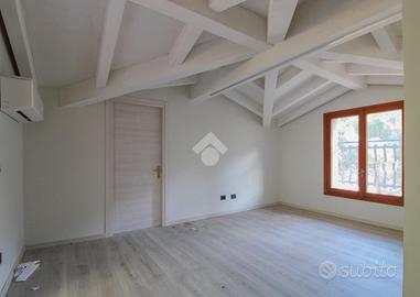 Tramite scala interna accediamo al piano primo, dove troviamo la camera da letto matrimoniale che, tramite portafinestra, ci conduce ad un piccolo balcone.
