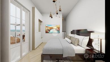 Al piano terra troviamo un accogliente disimpegno d'ingresso che conduce alla zona giorno, composta da sala da pranzo, soggiorno e cucina abitabile. Da questi ambienti si accede tramite porta finestra al meraviglioso terrazzo panoramico, perfetto per momenti di relax all'aperto. Completano il piano una camera da letto matrimoniale e un bagno arredato di vasca.