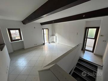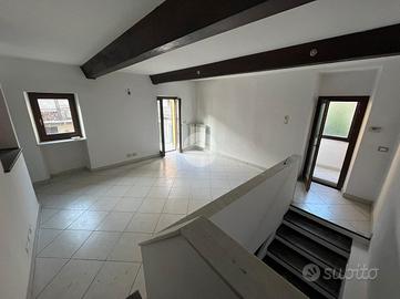 L'immobile é sviluppato su più livelli e si presenta con ingresso su una luminosa e spaziosa zona giorno, una cucina abitabile in muratura e completa il piano un primo bagno finestrato. Tramite una comoda scala in legno si accede al primo piano, che porta ad una grande area, attualmente adibita come soggiorno e una cameretta, entrambe con sfogo su due balconi.