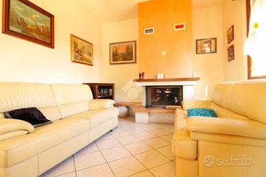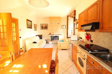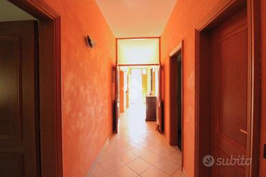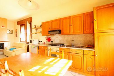 Il corridoio centrale conduce a tutti gli spazi dell'abitazione: a destra troviamo la grande cucina abitabile in cui troneggia un importante camino a legna e che permette di ospitare anche le famiglie più numerose, a sinistra un luminoso soggiorno perfetto per i momenti di relax.