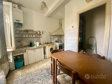 CIVICO 19 - Appartamento di 5 vani composto da ingresso nel soggiorno, cucina abitabile con piccolo ripostiglio, camera da letto ed infine il sottoscala, il tutto al piano terreno, salendo le scale troviamo il bagno e la seconda camera da letto. Completa l'alloggio il GIARDINO circostante di circa 250 mq.