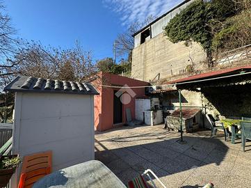 Via Pierino Negrotto Cambiaso, ci troviamo nella parte alta della via nella zona "Begato paese", defilati dal traffico cittadino ma a pochi passi dalla fermata dell'autobus linea Amt, proponiamo in vendita casa indipendente su quattro lati. Vi accediamo dalla strada principale tramite una scalinata in discesa, che ci accompagna al cancello d'ingresso. Dopo aver percorso il giardino terrazzato, entriamo in casa tramite una veranda dove ci accoglie la zona giorno con sala da pranzo/soggiorno e angolo cottura. La zona notte è composta da una camera da letto matrimoniale e da una cameretta singola. Il bagno è piastrellato sui toni chiari, dotato di doccia e finestra. Il riscaldamento è termoautonomo. L'immobile si presenta in buono stato con infissi in pvc doppio vetro ed impianto elettrico sfilabile. Completano la proprietà due fasce di terreno, una cantina ed un locale deposito in lamiera sito sulla strada ed accatastato come box.
