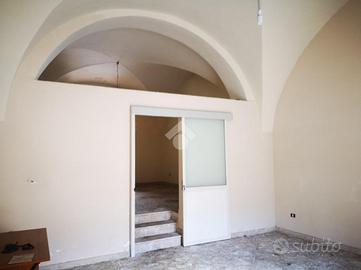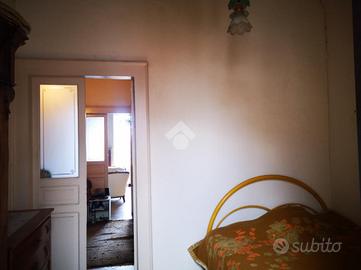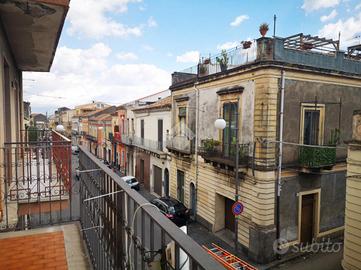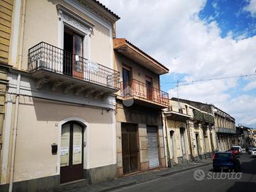 L'immobile: palazzo antico su due livelli tipico anni '40, lo stile barocco siciliano con i prospetti e la facciata in ottime condizioni, il balcone ampio sulla via callipoli. Doppio l'ingresso, uno su via callipoli l'altro dal retro da via Leopardi su cortile carrabile come posto auto interno. La casa, unica per impianti e catastalmente, al piano terra due vani molto ampi, un cucinotto interno e piccolo vano rustico accessibile dal cortile; il piano primo accessibile da scala esterna dal cortile, ha terrazzino, due vani più i bagni e ripostiglio, con scala interna a chiocciola si può accedere al terrazzo sovrastante panoramico vista etna e centro storico. Le condizioni sono discrete, da rivedere gli impianti, i bagni da rifare e gli infissi in legno monovetro. La pavimentazione in cemento decorato tipico, e la camera principale con tetti affrescati.