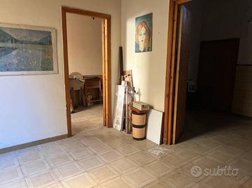 L'immobile: Indipendente al piano terra, due vani, bagno, cucina e cortile di 5 mq. Le condizioni generali della casa sono da ristrutturare, necessario rivedere impianti elettrico e idrico, la pavimentazione è in ceramica. L'ingresso è su un primo ambiente che fa da soggiorno, collegato in sequenza con una stanza a sinistra e frontalmente la cucina, a seguire il corridoio con il bagno e il cortile. Gli infissi sono in alluminio monovetro.