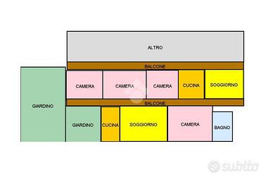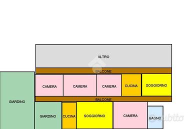 Al piano terra e al primo piano troviamo due appartamenti ugualmente disposti: ampio soggiorno luminoso, cucina abitabile, due camere da letto e bagno con vasca.