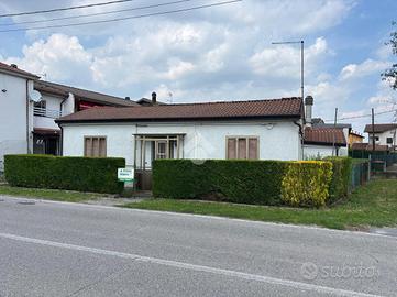 GRANZE: casa indipendente, situata vicino al centro del paese. Disposta tutta su un piano, entrando troviamo l'ingresso con un salottino, sulla destra una camera da letto matrimoniale e sulla sinistra un ulteriore camera da letto anch'essa matrimoniale. Dal salottino si accede alla sala da pranzo con cucina separata e al bagno finestrato con doccia. Nel retro della casa, completano la proprietà il locale caldaia e una pratica cantina. Sempre di proprietà, terreno edificabile di circa 400 mq, situato sul retro della casa.