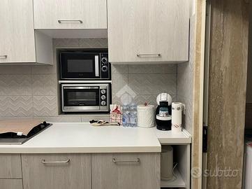 Al piano terra ci accoglie una confortevole zona giorno con cucinotto, bagno di servizio e l'accesso a un delizioso atrio esterno privato, ideale per un angolo relax.