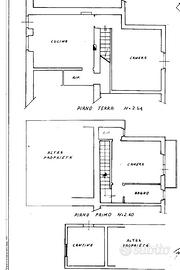La proprietà si sviluppa su più livelli ed è composta da: al piano terra, soggiorno con cucina e camera da letto matrimoniale con bagno e al piano primo da un'ulteriore camera matrimoniale con terrazzo e un bagno. Esternamente presenta un annesso con camino e un terreno di circa 300 mt di proprietà.