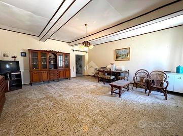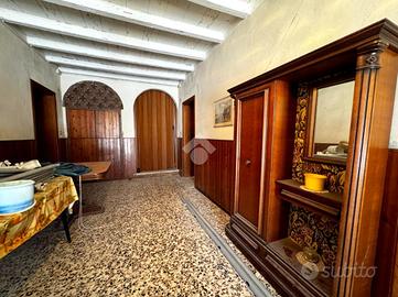 L'abitazione principale, costruita intorno agli anni '50, conserva ancora oggi un'impostazione strutturale solida e funzionale. Al piano terra, un ampio ingresso introduce alle diverse stanze: la sala da pranzo, la cucina abitabile con cucinotto separato, un soggiorno generoso negli spazi, una camera da letto con bagno privato, un ulteriore bagno con vasca e un comodo ripostiglio sottoscala.