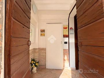 L'ingresso esterno si apre su un ampio cortile, perfetto per momenti di relax e convivialità. Nel cortile è presente anche una stanza attualmente adibita a lavanderia, che offre praticità e funzionalità.