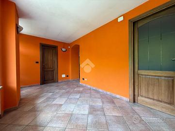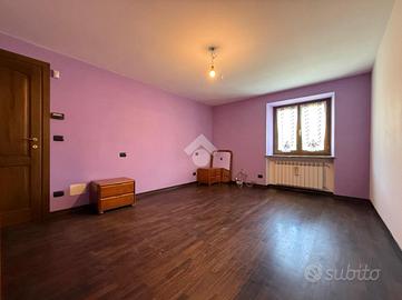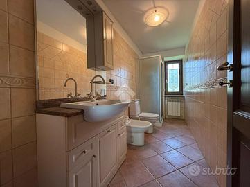 Un primo alloggio si compone di un ingresso con vetrata ad arco, due bagni (uno con doccia e uno con vasca), una cucina abitabile, un soggiorno con caminetto alimentato a legna e tre camere da letto.