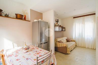 L'immobile, disposto su un unico livello, si apre su un disimpegno, che conduce agli ambienti principali. La zona giorno è composta da soggiorno con angolo cottura, con accesso diretto alla corte esterna. La zona notte comprende una camera matrimoniale, anch'essa con accesso alla corte, ed un bagno finestrato con box doccia.