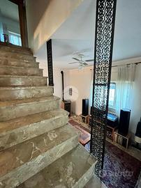 Una scala interna in marmo conduce al piano superiore, dove si trovano due camerette, una camera matrimoniale, una pratica zona lavanderia e un bagno con vasca.