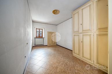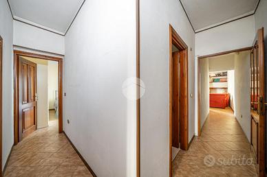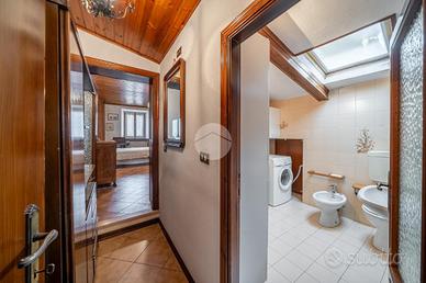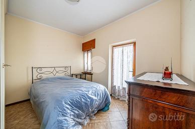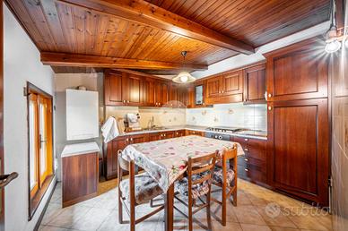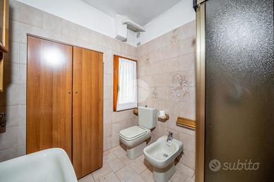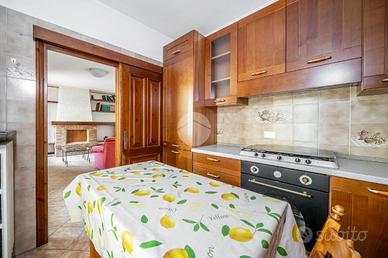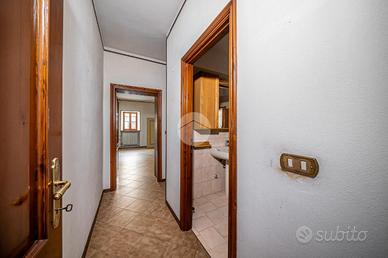 Al piano rialzato, il primo appartamento con l'ingresso che ci conduce alla ZONA GIORNO con un SOGGIORNO con CAMINO e una cucina abitabile, dal disimpegno la ZONA NOTTE con DUE camere da letto e un servizio completo di DOCCIA.