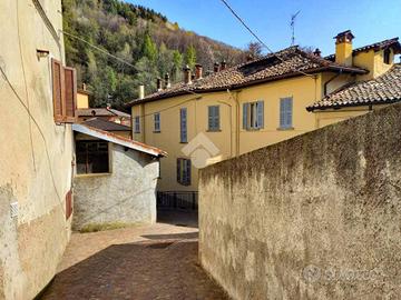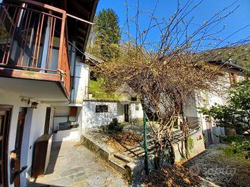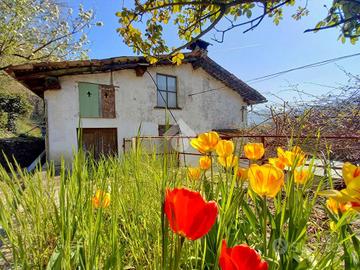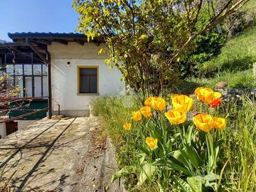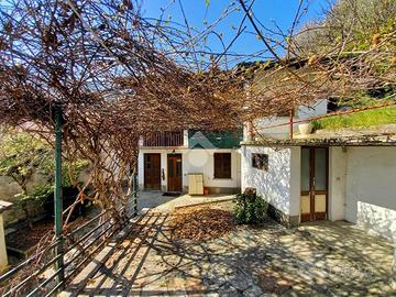 Raccolta su di una tipica corte con generosi alberi da frutto al centro, si compone di un immobile residenziale su due livelli con annessi solaio ed accessori, un antistante porzione di fabbricato rurale, ulteriori vani di servizio affacciati sul cortile ed un terreno piantumato, in parte terrazzato, che si sviluppa a monte della proprietà.