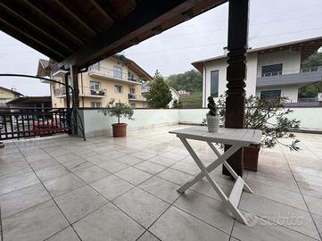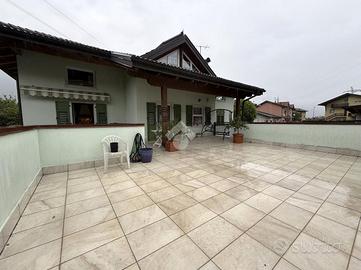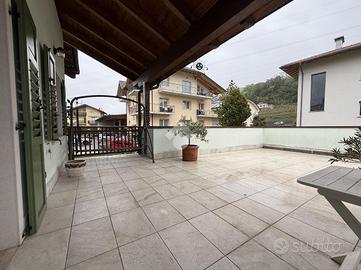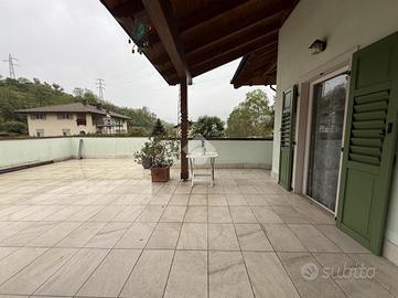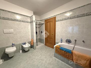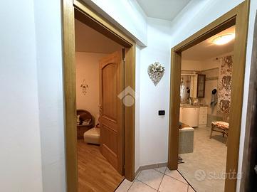 Tramite la pratica scala interna si accede all'abitazione caratterizzata da lumininoso soggiorno con accesso diretto al balcone esposto ad ovest, cucina abitabile con accesso all'ampio terrazzo esposto a Est, camera matrimoniale,camera doppia e bagno finestrato dotato di vasca e box doccia.