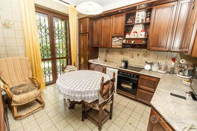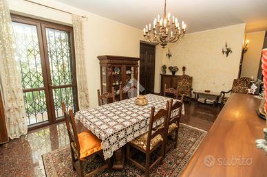 La villa, posizionata in una zona tranquilla e residenziale del comune di Leinì, è stata edificata nel 1979. La casa è circondata dal suo spazio esterno privato di circa 1700 mq in parte gestito a cortile ed in parte verde con alberi secolari. L'abitazione principale si sviluppa su un unico piano abitativo. L'ingresso è tramite il portoncino blindato, dove ci accoglie l'ampio soggiorno, l'affaccio di questo ambiente è sul portico coperto, ideale per godere a pieno della tranquillità della zona nella bella stagione. Il corridoio con ripostiglio permette di arrivare alla cucina abitabile, alle tre camere da letto di generosa metratura e ai due bagni, rispettivamente con vasca e doccia ed entrambi finestrati. La scala presente nel salone, conduce al piano interrato dove troviamo un'ampia tavernetta con angolo bar e camino a legna, locale cantina e lavanderia, un cucinino ed un comodo bagno con doccia. Sullo stesso piano box auto e intercapedine, ideale come spazio di servizio utilizzabile come deposito per attrezzature, scatoloni o materiali stagionali. L'immobile è ottimo per chi cerca quiete e serenità, grazie alla posizione e all'ottima esposizione.
