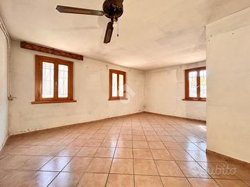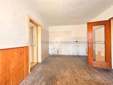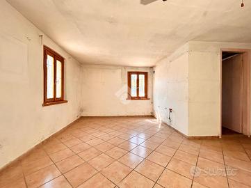 Entrando, attraverso un portoncino in legno, si viene accolti dalla zona giorno, interamente disposta al piano terra. Subito a destra si apre un ampio e luminoso soggiorno, ideale per momenti di convivialità, collegato a un bagno finestrato con doccia e a un pratico studio, perfetto per lavorare da casa o come stanza hobby. Sulla sinistra troviamo invece un ripostiglio, una prima camera singola e una cucina abitabile di circa 20 mq, spaziosa e ben illuminata, con accesso al secondo bagno, anch'esso finestrato e dotato di doccia.
