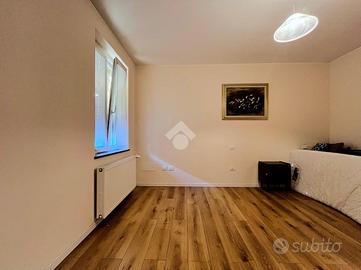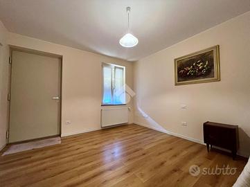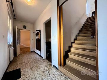 L'ingresso principale, tramite portoncino blindato, conduce a un lungo corridoio che distribuisce gli ambienti del piano terra: sulla destra si trova una cucina abitabile, collegata alla zona lavanderia/ripostiglio; frontalmente, un ampio e luminoso soggiorno; sulla sinistra, la prima camera matrimoniale, servita da un bagno finestrato con doccia, recentemente ristrutturato.