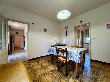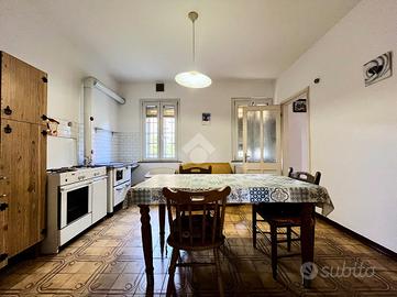 L'intero fabbricato risale alla prima metà del '900, periodo che si riflette negli ampi spazi interni e nelle numerose pertinenze che arricchiscono la proprietà. L'abitazione è dotata di accesso indipendente direttamente dalla strada principale e si apre su un ampio cortile privato.