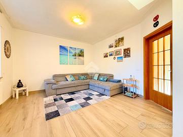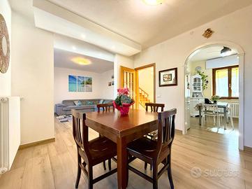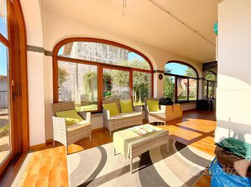L'ingresso all'abitazione avviene attraverso una splendida veranda coperta di circa 50 mq, un ambiente luminoso e accogliente, perfetto da vivere tutto l'anno come spazio relax o zona conviviale. Da qui si accede direttamente alla zona giorno, un grande open space ben organizzato e funzionale, composto da un ampio soggiorno con affaccio sulla sala da pranzo, spaziosa e versatile, collegata alla cucina abitabile. Sullo stesso piano si trovano inoltre un bagno finestrato con doccia e il vano scala che collega i vari livelli.