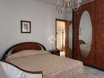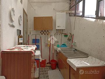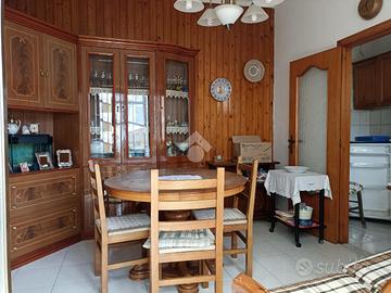L'immobile proposto in vendita è una casa indipendente su più livelli e con doppio ingresso; il piano terra è composto da zona cantina di mq 71 calpestabili distribuiti in un unico ambiente e con più aperture dove è presente anche un servizio con vasca, un garage doppio di mq 27 è collegato alla cantina tramite porta interna; una scala collega al piano primo di 65 mq interni, e si tratta di un quadrilocale più servizi e spazi esterni; l'ingresso è su saletta che disimpegna a destra il soggiorno con balcone e finestra, la camera da letto matrimoniale con un secondo balcone e una cameretta con uscita su terrazzino; sulla sinistra invece troviamo una seconda cameretta finestrata, una zona lavanderia realizzata in veranda, la sala da pranzo e cucinino.