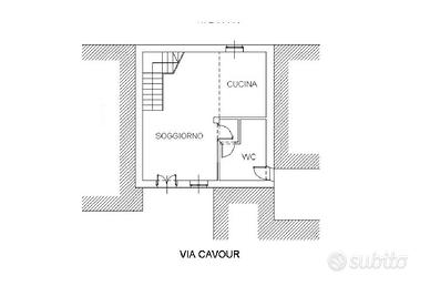 L'immobile si sviluppa su tre livelli fuori terra. La porta d'accesso blindata si apre sulla zona giorno open-space; la sala e la cucina sono collegate tra loro mediante un arco sostenuto da due colonne in mattoni a vista, che donano un tocco rustico e suggestivo all'ambiente. A servizio del piano terra vi è il primo dei due bagni, dotato di doccia multifunzione. Tramite una scala interna rifinita in marmo, si raggiunge il primo piano, ove è disposta la zona notte. Due camere compongono il piano: la prima, con accesso al balconcino e con affaccio su strada, è più grande, mentre la seconda, di dimensioni minori, è adatta a essere adibita a studio, cameretta o cabina armadio. Il bagno del primo piano è anch'esso accessoriato con doccia. Il sottotetto, sito al terzo ed ultimo piano, è dotato di tre vani, utilizzabili come ripostiglio.
