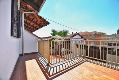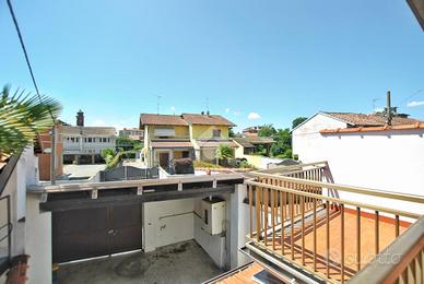 La soluzione si sviluppa su due livelli fuori terra ed è situata a soli 300 metri dal centro. Il portone carraio conduce nel cortile che precede l'ingresso all'abitazione. La zona giorno del piano terra è costituita da un unico vano open space; un piccolo muretto delimita l'area del soggiorno da quella della cucina. La lavanderia, dotata di doccia, allacci per la lavatrice e servizi, è accessibile dall'esterno e completa il piano. La scala interna conduce alla zona notte composta da una camera da letto spaziosa; questa ha accesso al terrazzo con affaccio sulla proprietà. Il bagno del piano è anch'esso dotato di doccia.
