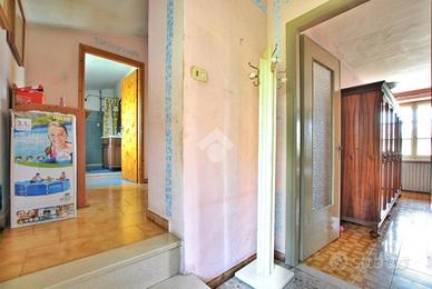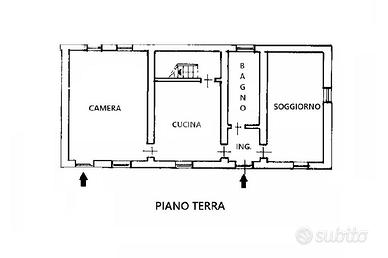 La porta d'ingresso si apre su un disimpegno che mette in comunicazione i due locali della zona giorno con il primo bagno dell'abitazione. Il soggiorno, impreziosito da un camino a legna con mattoni a vista, è separato dalla cucina abitabile, permettendo così di sfruttare al meglio le potenzialità di entrambi gli ambienti nei momenti a loro dedicati. Sul medesimo piano si trova una stanza, dotata di allacci idraulici, allacci della cucina e accesso diretto al cortile, ideale come stireria, studio o locale multiuso. Il bagno del piano è completo di vasca e predisposizione per la lavatrice.