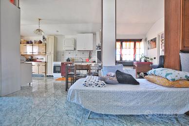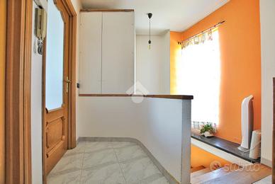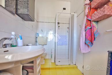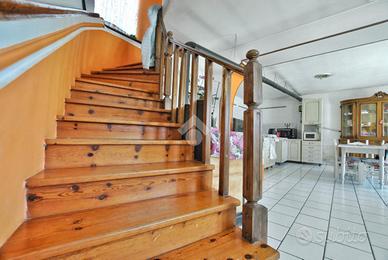 e La proprietà si sviluppa al fondo di un vicolo ed è costituita da due unità abitative differenti per dimensioni. L'abitazione più grande si sviluppa su due livelli, mentre la più piccola occupa il primo piano del secondo fabbricato. La porta d'ingresso della prima unità conduce alla zona giorno; un ampio locale open space unisce il soggiorno con la cucina, accessoriato di vano ripostiglio. Il bagno del piano è accessoriato di doccia. Una scala in legno a vista introduce al disimpegno del primo piano, nonché alla zona notte. Qui sono presenti due camere da letto, di diversa metratura, ed entrambe con accesso al medesimo balcone. Completa la zona notte il secondo bagno, dotato di vasca.