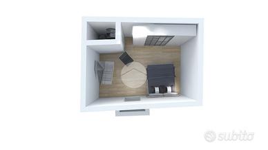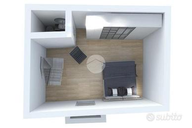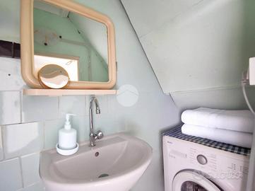 Al piano terra troviamo un accogliente soggiorno con angolo cottura e bagno, ideale come zona giorno.