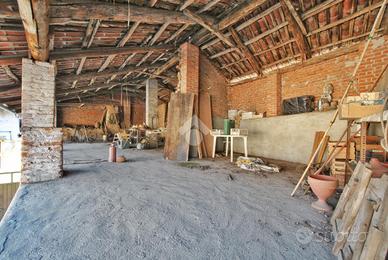 Il cortile è di pertinenza esclusiva ed ospita una tettoia, un box auto e due depositi.