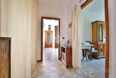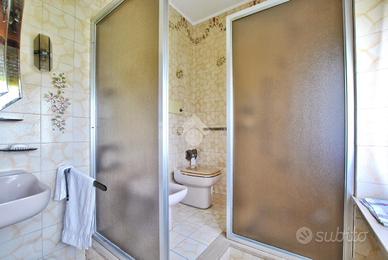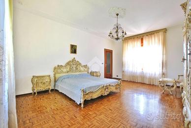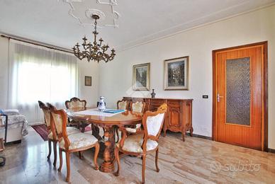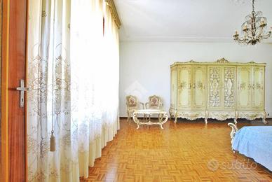 La porta d'ingresso si apre sul vano scala che mette in comunicazione il piano superiore, dedicato alla zona notte, con la zona giorno del piano terra; qui è possibile raggiungere anche il vano ripostiglio del sottoscala. La cucina è abitabile ed è dotata della predisposizione per l'impianto di condizionamento, mentre il soggiorno vanta la doppia esposizione che lo rende molto luminoso e ventilato. Un disimpegno conduce alle prime due stanze fuori dalla zona living: la prima è ideale da adibire a stireria oppure da sfruttare come vera e propria cabina armadio, essendo collocata adiacente alla prima delle camere da letto. Il piano è completato dalla presenza di un bagno con doccia. Il primo piano accoglie la zona notte e la sua ricchezza di spazio, che consente di adattare le quattro stanze presenti alle proprie esigenze attuali e future. Due delle camere sono impreziosite da un meraviglioso parquet a spina di pesce, donando loro un'eleganza senza tempo. Il bagno a servizio della zona notte è anch'esso dotato di doccia e offre il comfort di un doppio lavabo.