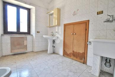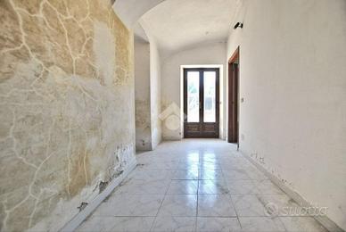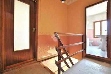 Il caseggiato si sviluppa su due livelli, disposto con la classica zona giorno al piano terra e la zona notte al piano superiore. La presenza di una scala esterna, oltre a quella interna, permette di personalizzare la soluzione al fine di renderla anche bifamiliare, qualora ce ne fosse la necessità. L'ingresso si apre sulla cucina; il soggiorno ospita la scala che conduce al primo piano. Uno spazioso disimpegno precede il bagno del piano terra, dotato di vasca ed allacci per la lavatrice. La zona notte ospita due camere da letto, entrambe con accesso al balcone e al terrazzo tramite porta finestra, ed una terza camera accessibile solo dall'esterno. A completamento del piano vi è il secondo bagno, anch'esso con vasca.
