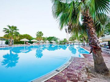 Proponiamo in vendita località Ippocampo Villaggio Emmanuel appartamento piano terra con giardino di circa 120 mq, l'immobile è composto da cucina soggiorno, camera da letto, due camerette e servizi con giardino esclusivo di proprietà. L' appartamento è completamente arredato,completo di impianto di riscaldamento , pronto per essere abitato senza necessità di ulteriori interventi. La presenza di un posto auto al piano interrato coperto garantisce comodità e sicurezza per il parcheggio. Uno degli elementi distintivi di quest' appartamento è la spaziosa veranda, ideale per momenti di relax all'aperto o per cene estive in compagnia. La posizione strategica consente di godere della tranquillità della zona, completano la soluzione tutti i servizi proposti dal villaggio quale spiagge esclusive , piscine , campo da tennis , ristorante , bar , pizzeria , animazione e servizi di vigilanza 24h su 24h.