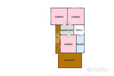Una scala interna in legno, conduce al piano superiore, dove si sviluppano gli altri ambienti della casa. A metà rampa si trova un comodo bagno finestrato, dotato di ampia doccia. Al piano superiore, tre camere da letto matrimoniali offrono comfort e privacy per tutta la famiglia. La prima si distingue per l'atmosfera tipica delle abitazioni maranesi, che si ritrova in ogni dettaglio: i toni freddi del bianco e dell'azzurro, del pavimento in legno e negli elementi d'arredo. Le altre due, rivestite con moquette, ospitano un letto matrimoniale e due letti singoli e completano la zona notte.