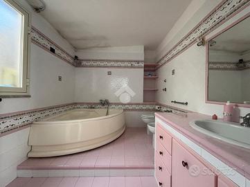 Da una scala a chiocciola si accede al primo piano, dove è presente la camera da letto matrimoniale, servita da un bagno con vasca e da un ampio terrazzo.