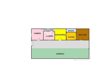 L'immobile si sviluppa su un'unica elevazione; nello specifico l'immobile gode di un doppio ingresso, uno su soggiorno e uno sulla cucina.