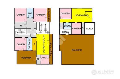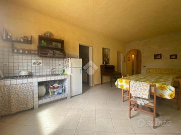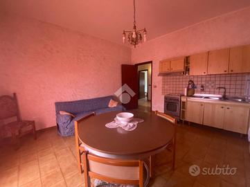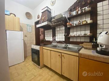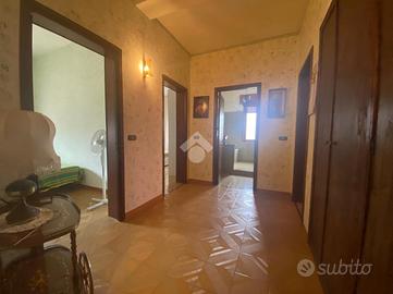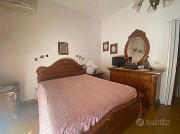 L'immobile, caratterizzato per la sua ampia quadratura, presenta un appartamento al piano terra ed uno al primo piano. Al piano terra troviamo una zona giorno con angolo cottura, due camere da letto ed un bagno oltre che un ripostiglio. Al primo piano l'immobile è caratterizzato da un ampio soggiorno dotato di camino, che comunica con una piccola cucina prospiciente una veranda coperta. La zona notte è caratterizzata dalla presenza di quattro camere da letto. A servizio troviamo due bagni di cui uno con doccia ed uno con vasca tre ripostigli. L'immobile è dotato di due scale di accesso ed un ampio porticato utile come zona parcheggio. La soluzione presente rifiniture degli anni ottanta e necessita di opere di riammodernamento.