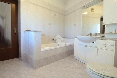 La scala interna conduce invece al primo piano, dove si sviluppa la zona notte con tre spaziose camere da letto e un secondo bagno finestrato con vasca.