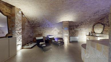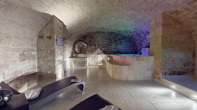 Al livello inferiore si apre l'area più suggestiva della casa: una zona relax/spa privata, impreziosita da una piscina in pietra (3x2) con quattro postazioni idromassaggio e cascata cervicale, ideale per momenti di benessere e totale relax.