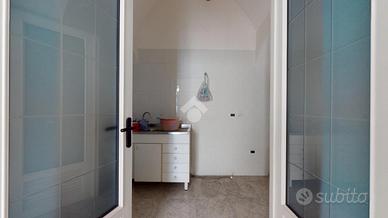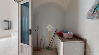 L'ingresso avviene attraverso una rampa di scale che conduce a un piccolo disimpegno: sulla destra si sviluppa la zona giorno, ampia e luminosa, con angolo cottura e balconcino, seguita dal bagno principale dotato di vasca. Sul lato sinistro del disimpegno troviamo invece la camera da letto, anch'essa con balconcino, un bagno di servizio e la scala interna che conduce al tetto di pertinenza, spazioso e panoramico, ideale come area relax o per trascorrere momenti all'aperto.