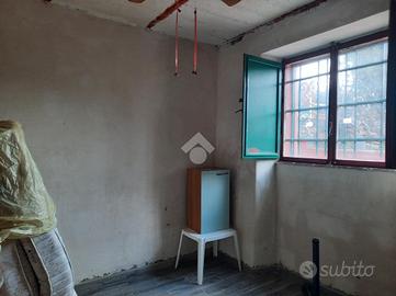 La casa: un indipendente di antica edificazione, posizionata al primo piano con terrapieno sottostante e cortile a livello carrabile di proprietà livello strada. La casa ha ingresso sia pedonale con scale esterne di accesso alla casa e terrazzo a livello con cisterna, sia Ingresso carrabile comodo sul cortile livello strada. La casa libera sui lati, ha esposizione a nord sul terrazzo panoramico vista mare e taormina, e sud con cortile interno vista etna che fa da accesso anche al terrazzo sovrastante di copertura panoramico a 360 gradi. Internamente, ingresso su salone, disimpegmo con bagno, cucinino e camera da letto. Le condizioni sono parzialmente ristrutturate, eseguiti i lavori di consolidamento struttura e impermeabilizzazione e pavimentazione terrazzo, rifatte le tracce degli impianti, bagno finito con impianto idrico rifatto, da fare porte interne e finire impianto elettrico, oltre alla pittura.