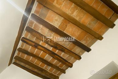Gli interni, caldi e accoglienti, conservano materiali autentici come le travi in castagno a vista, i pavimenti in cotto e i dettagli in marmo incastonato che impreziosiscono mobili e finiture.