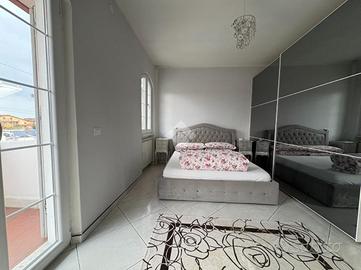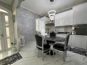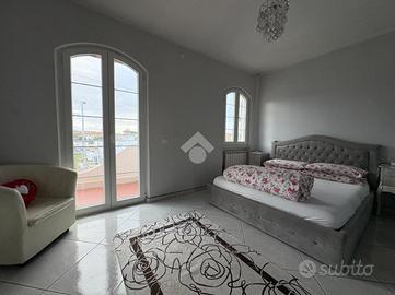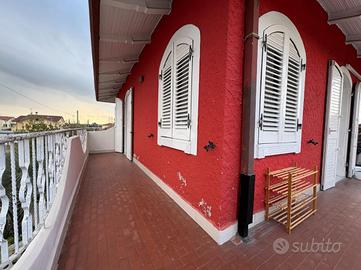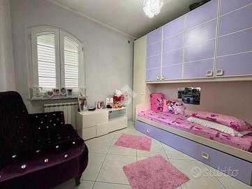 La proprietà si sviluppa su due livelli, dal piano rialzato entriamo nell'ampio soggiorno con cucina abitabile, un bagno con doccia finestrato e un ripostiglio. Al centro della sala troviamo una bellissima scala in marmo che ci porta al piano superiore dove si trovano 2 camere singole, un bagno con vasca finestrato e una camera matrimoniale. In entrambi i piani sono presenti due balconi angolari. Al piano interrato abbiamo una cantina al momento arredata con cucina, salottino, camera matrimoniale, camera sincola e bagno con doccia.