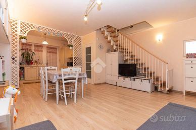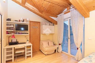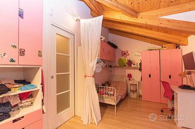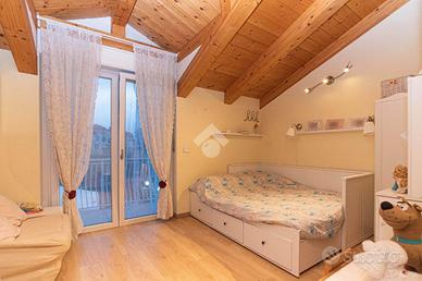 Collegata tramite scala interna, la zona notte al Piano Primo si compone di disimpegno, camera da letto matrimoniale con cabina armadi e terrazzo che si affaccia sul giardino privato, seconda camera da letto con balcone e con doccia.