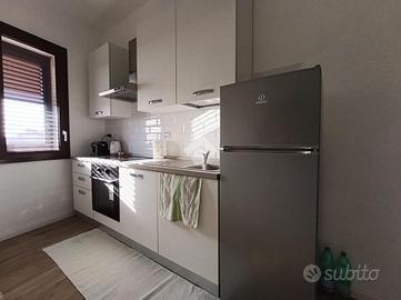 Al piano terra, la casa accoglie con due ingressi separati, uno dall'androne e uno dal cortile. Gli spazi interni sono ben distribuiti e comprendono un ingresso, due camere da letto, un disimpegno, due servizi e una luminosa cucina/soggiorno open space. Da qui si accede direttamente a un giardino riservato, perfetto per trascorrere momenti di relax all'aperto. A rendere l'ambiente ancora più caldo e conviviale è la presenza di un forno a legna all'interno della cucina.
