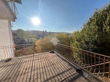 La casa si sviluppa su due livelli. Al piano terra troviamo l'ingresso, una cucina abitabile, un soggiorno con accesso al terrazzo. Al piano primo, invece, c'è una camera da letto con finestra, una seconda camera da letto con balcone e una vista panoramica, oltre a un bagno con vasca. Al piano sottostrada, la proprietà comprende una tavernetta con accesso diretto al giardino, un ulteriore spazio utile per vivere la casa all'aria aperta.