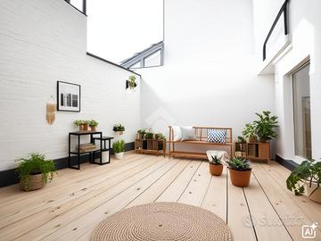 All'esterno è presente un giardino pavimentato, facilmente gestibile e perfetto per momenti di relax o per pranzi all'aperto.